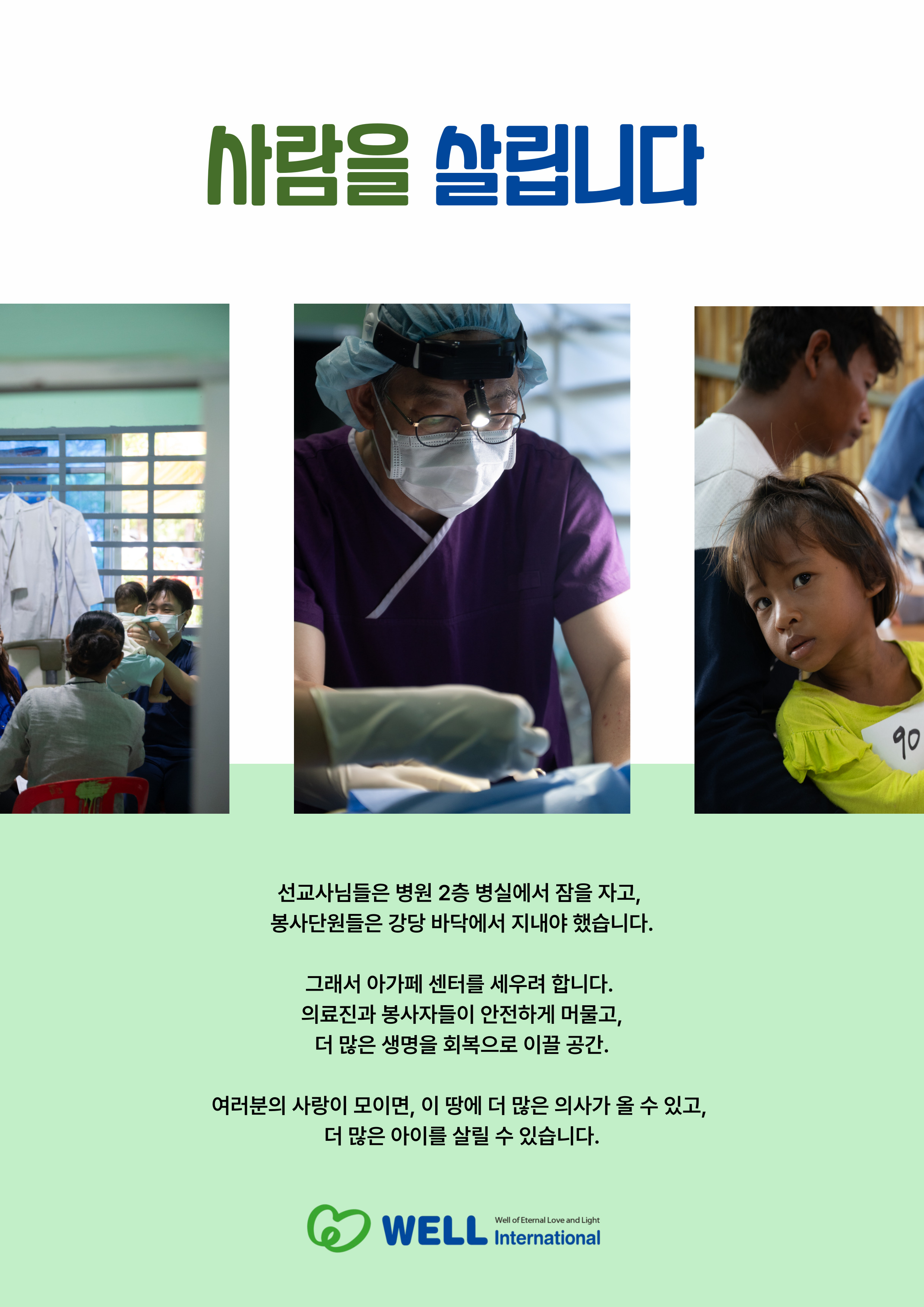 ÀÇ·áÁø°ú ºÀ»çÀÚµéÀÌ ¾ÈÀüÇÏ°Ô ¸Ó¹°°í, ´õ ¸¹Àº »ý¸íÀ» ȸº¹À¸·Î À̲ø °ø°£. ¿©·¯ºÐÀÇ »ç¶ûÀÌ ¸ðÀ̸é, ÀÌ ¶¥¿¡ ´õ ¸¹Àº Àǻ簡 ¿Ã ¼ö ÀÖ°í, ´õ ¸¹Àº ¾ÆÀ̸¦ »ì¸± ¼ö ÀÖ½À´Ï´Ù.